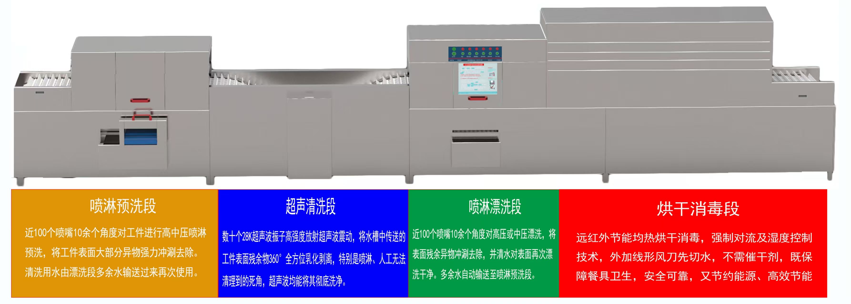 上超全自動超聲波洗碗機:學(xué)校飯?zhí)酶咝н\作與健 一、高效清洗,節(jié)省人力?學(xué)校飯?zhí)糜貌腿藬?shù)集中且數(shù)量龐大,每餐結(jié)束后堆積如山